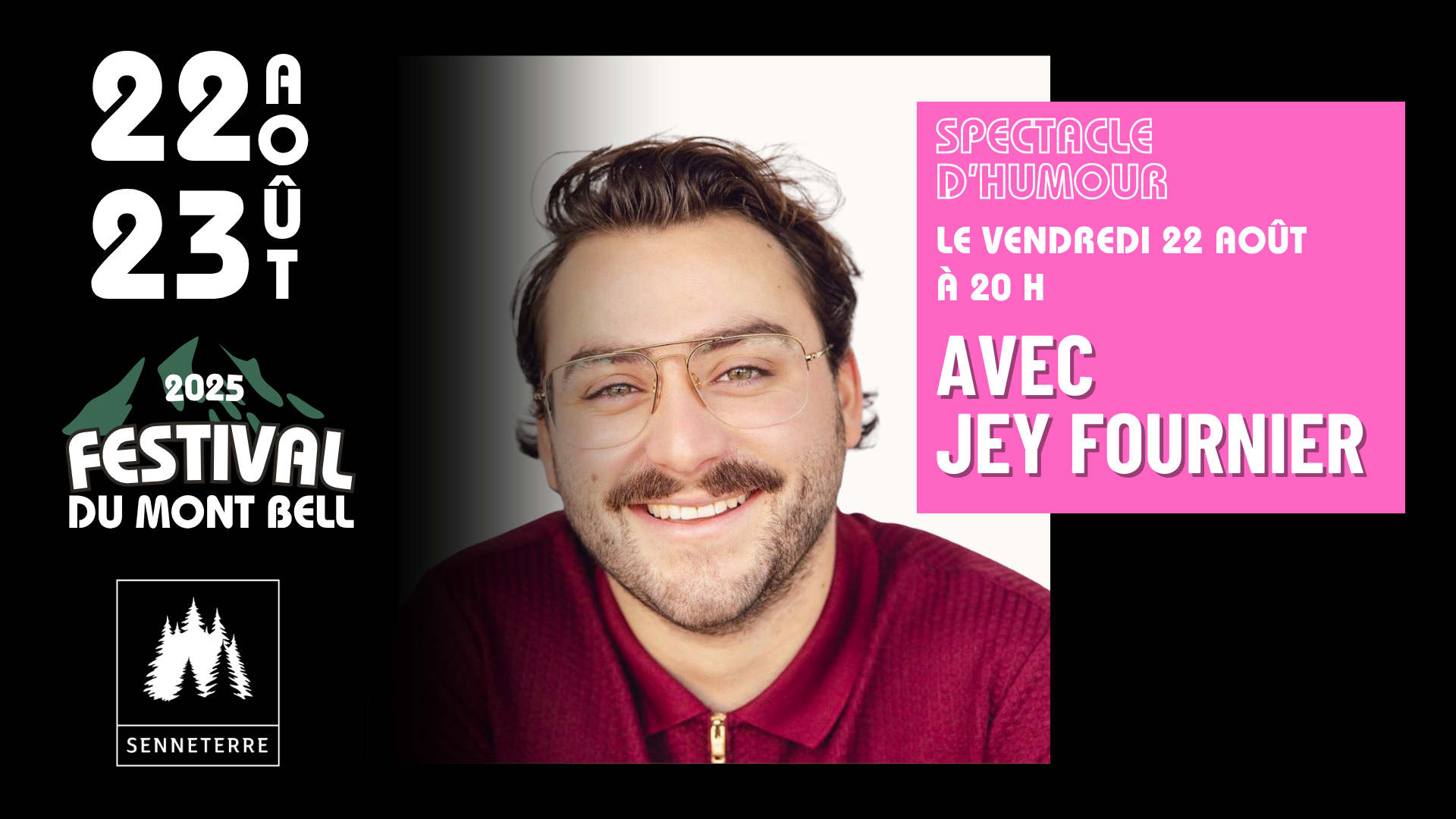 La fin de semaine débute en force avec une soirée d'humour en plein air au sommet du Mont Bell, dès 20 h sous le chapiteau. Le populaire humoriste Jey Fournier, connu pour sa présence scénique authentique et son humour mordant, y présentera un spectacle qui promet d'être mémorable.
