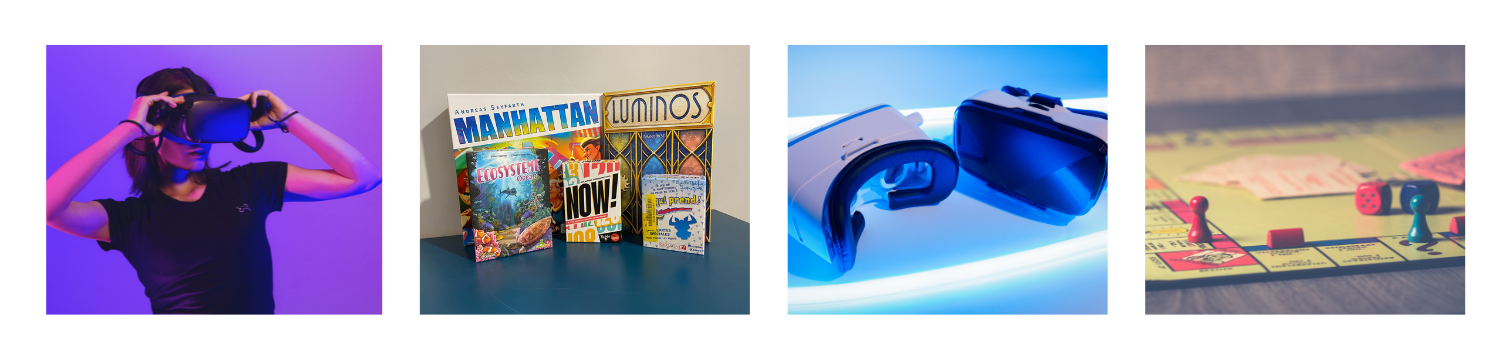 Atelier combiné casque Oculus et jeux de société. 30 minutes pour explorer la réalité virtuelle et 30 minutes pour découvrir un jeu de société.