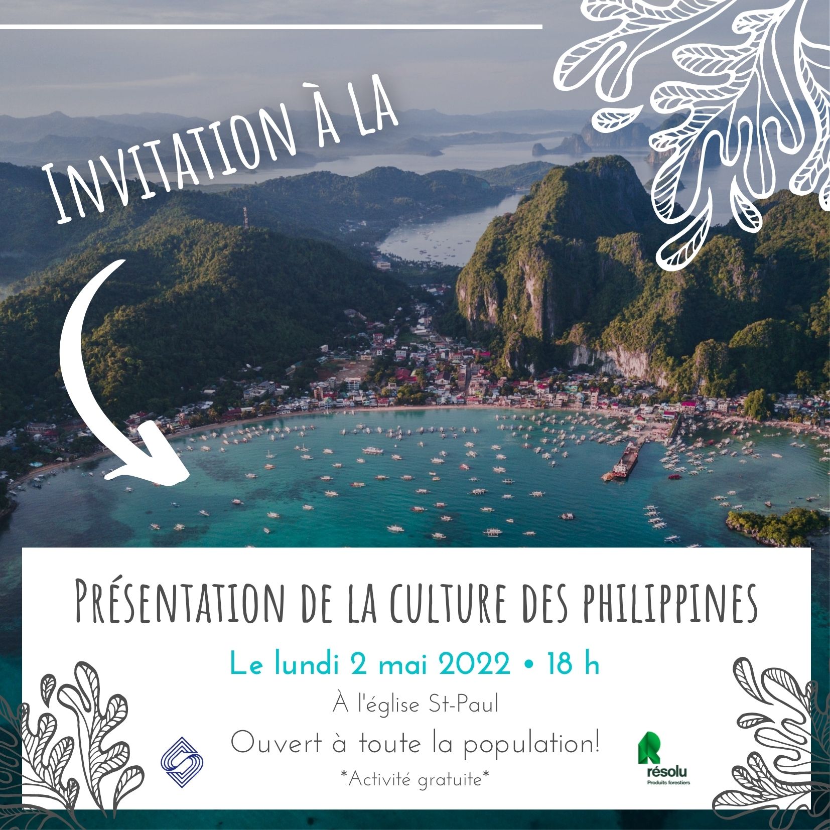La Ville de Senneterre et Produits forestiers Résolu sont heureux de vous inviter à assister à la présentation de la culture des nouveaux résidents provenant des Philippines. Venez en apprendre plus sur leur bagage culturel pour ainsi mieux comprendre la réalité de nos nouveaux citoyens.