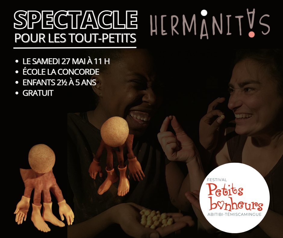 Dans le cadre du Festival Petits bonheurs en Abitibi-Témiscamingue, la ville de Senneterre vous offre le spectacle HERMANITAS.