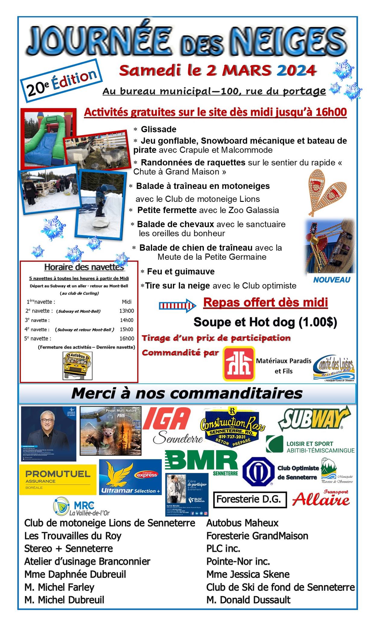 Journée des Neiges de Senneterre-Paroisse - 12 h à 16 h