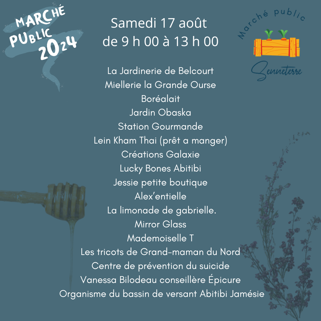 La Ville de Senneterre vous invite à venir rencontrer les artisans et les producteurs dans le cadre de notre premier marché public de la saison!Â