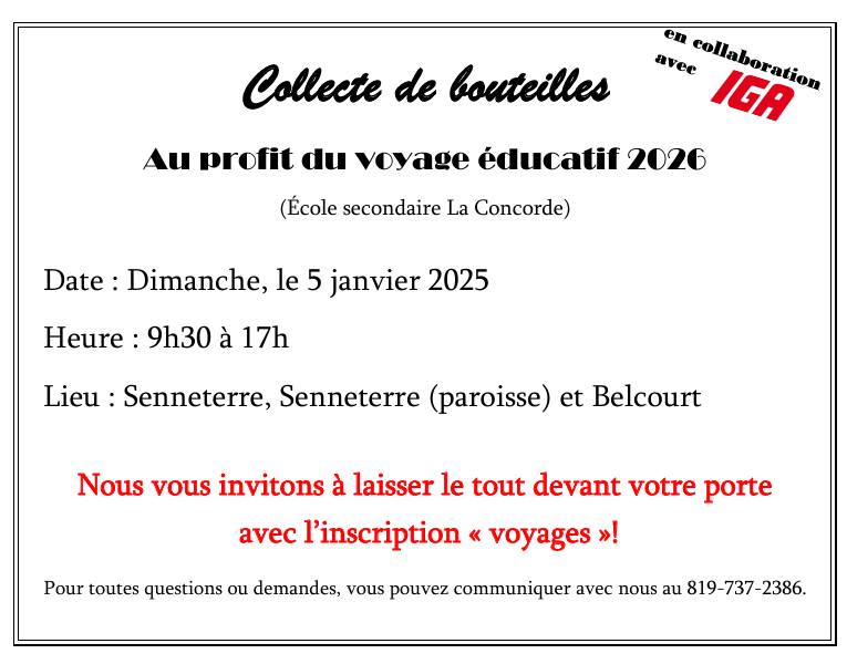 Collecte de canettes et de bouteilles - Voyage éducatifs 2025