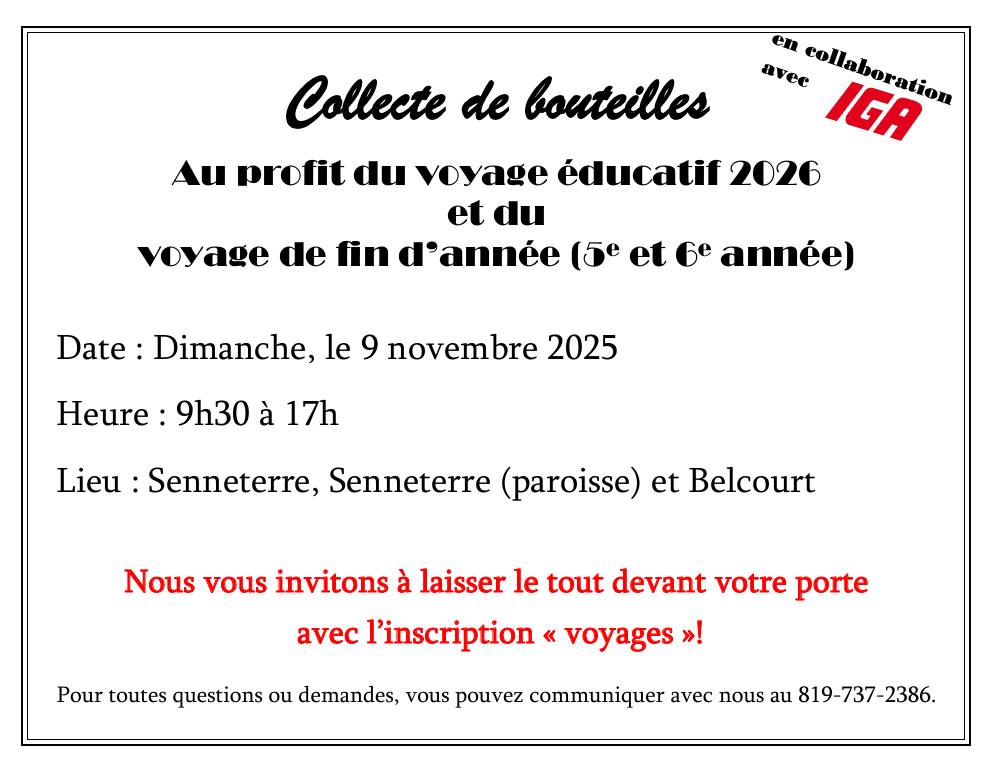 Collecte de canettes et de bouteilles - Voyage éducatifs 2026
