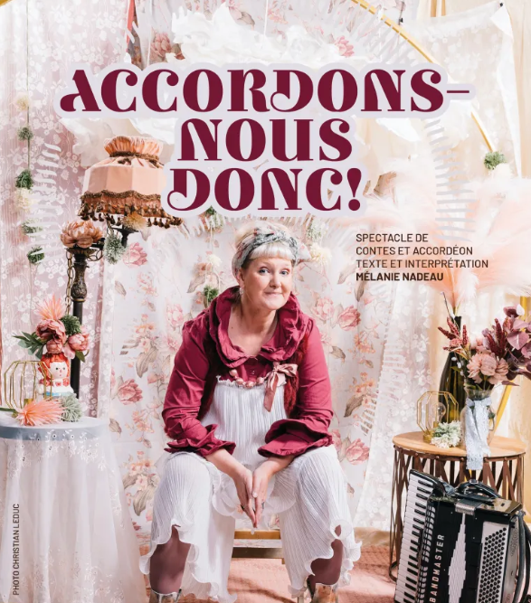 Accordons-nous donc! est un spectacle qui allie le plaisir du récit et la magie de la musique. Il plonge les spectateurs dans un univers où les histoires se mêlent aux mélodies pour susciter l'émotion, l'évasion et le rire. En mettant de l'avant un récit inspiré de la tradition orale (l'ambition petit tailleur de pierre) et deux contes originaux de mon répertoire, ce spectacle célèbre le patrimoine culturel tout en l'inscrivant dans une dynamique actuelle.