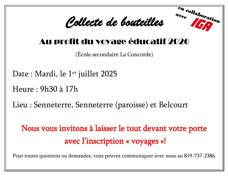 Collecte de canettes et de bouteilles - Voyage éducatifs 2025