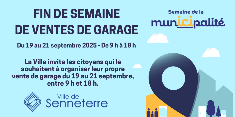 La Ville invite les citoyens qui le souhaitent à organiser leur propre vente de garage du 19 au 21 septembre, entre 9 h et 18 h.