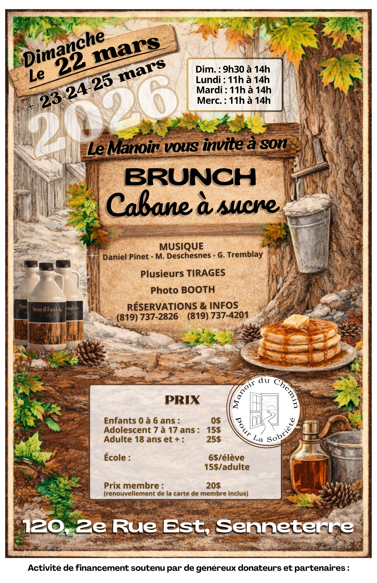 INVITATION à notre BRUNCH CABANE À SUCRE, qui se tiendra du dimanche 22 mars au mercredi 25 mars 2026 inclusivement.