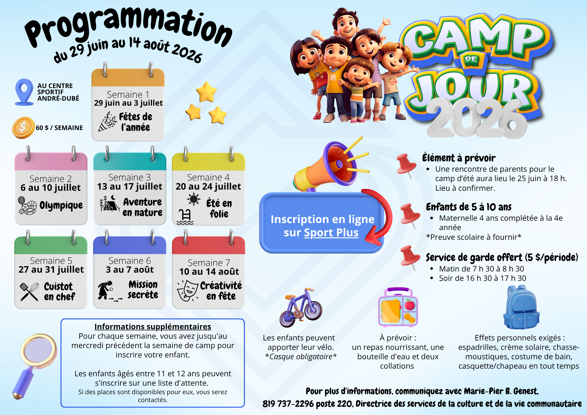 Le programme du camp de jour est conçu pour :