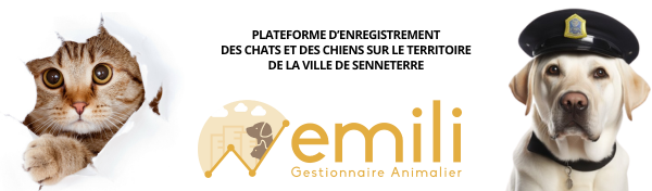La Ville de Senneterre offre un service de gestion et d'émission de licences pour les animaux de compagnie, incluant la distribution de médailles. La plateforme Emili, mise à la disposition des propriétaires de chats et de chiens, permet l'inscription en ligne, la création d'un profil complet pour chaque animal, le paiement par carte de crédit directement sur la plateforme sécurisée et des alertes de renouvellement annuel.